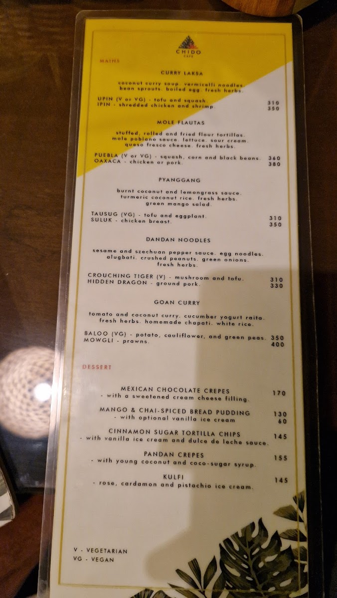 Chido Cafe Menu